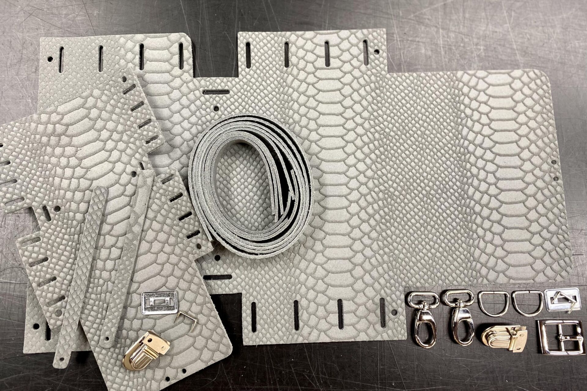 - Vorgestanzte Lederschnittmuster (1× Tasche, 1× Portemonnaie)