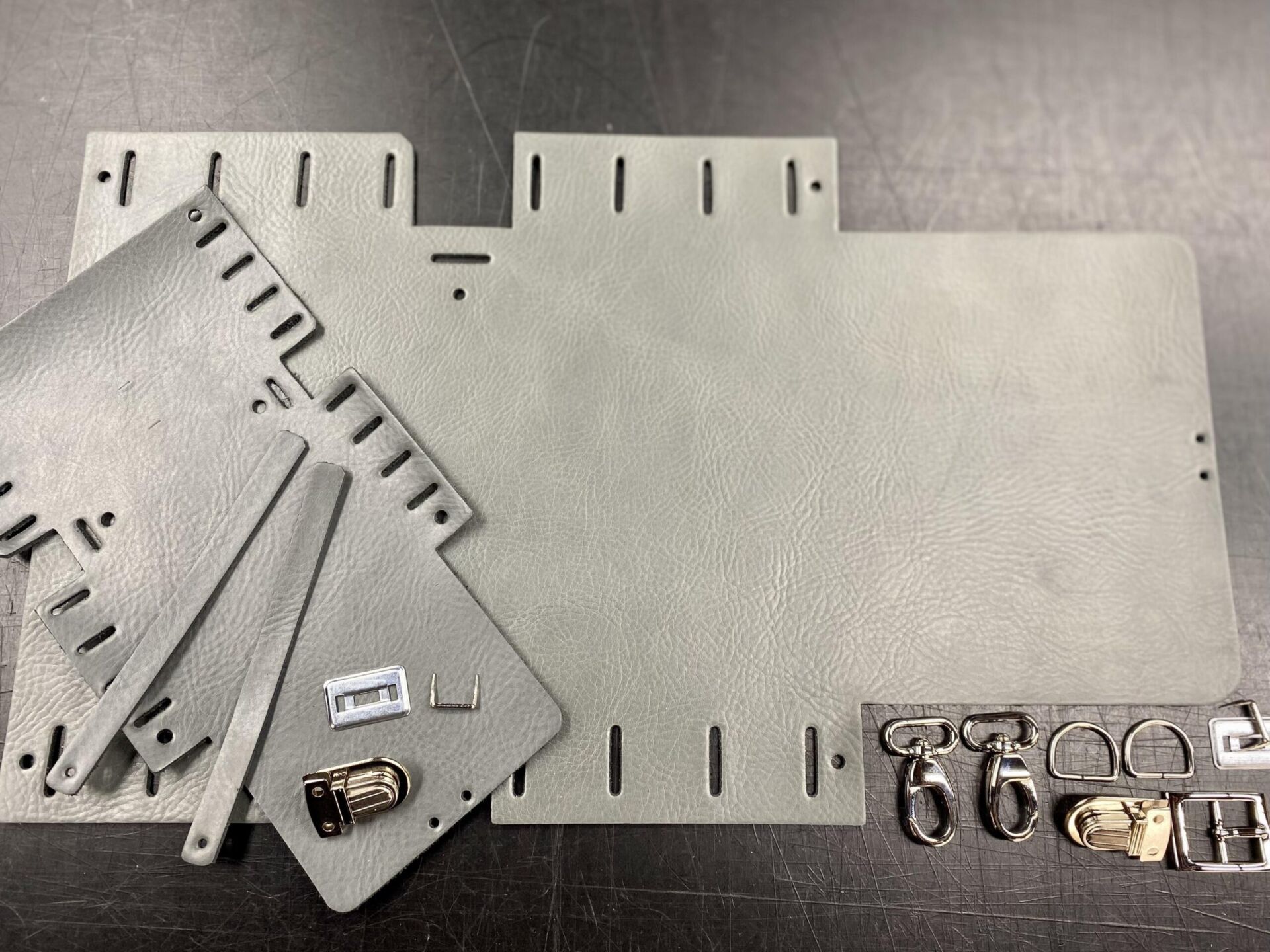 - Vorgestanzte Lederschnittmuster (1× Tasche, 1× Portemonnaie)