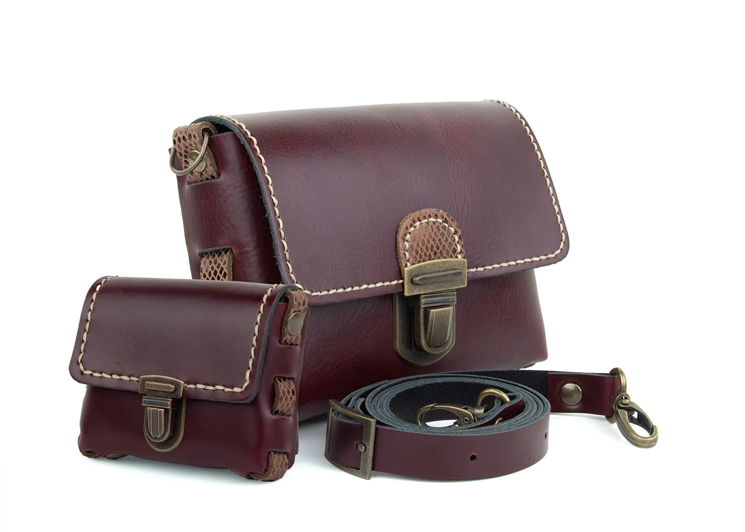 Stilvolle DIY-Crossbody Tasche JULYA aus hochwertigem Leder. Komplettes DIY-Set mit vorgestanzten Schnittmustern, allen Materialien und bebilderter „Schritt-für-Schritt“ Anleitung – ideal zum Selbermachen ohne Nähmaschine.