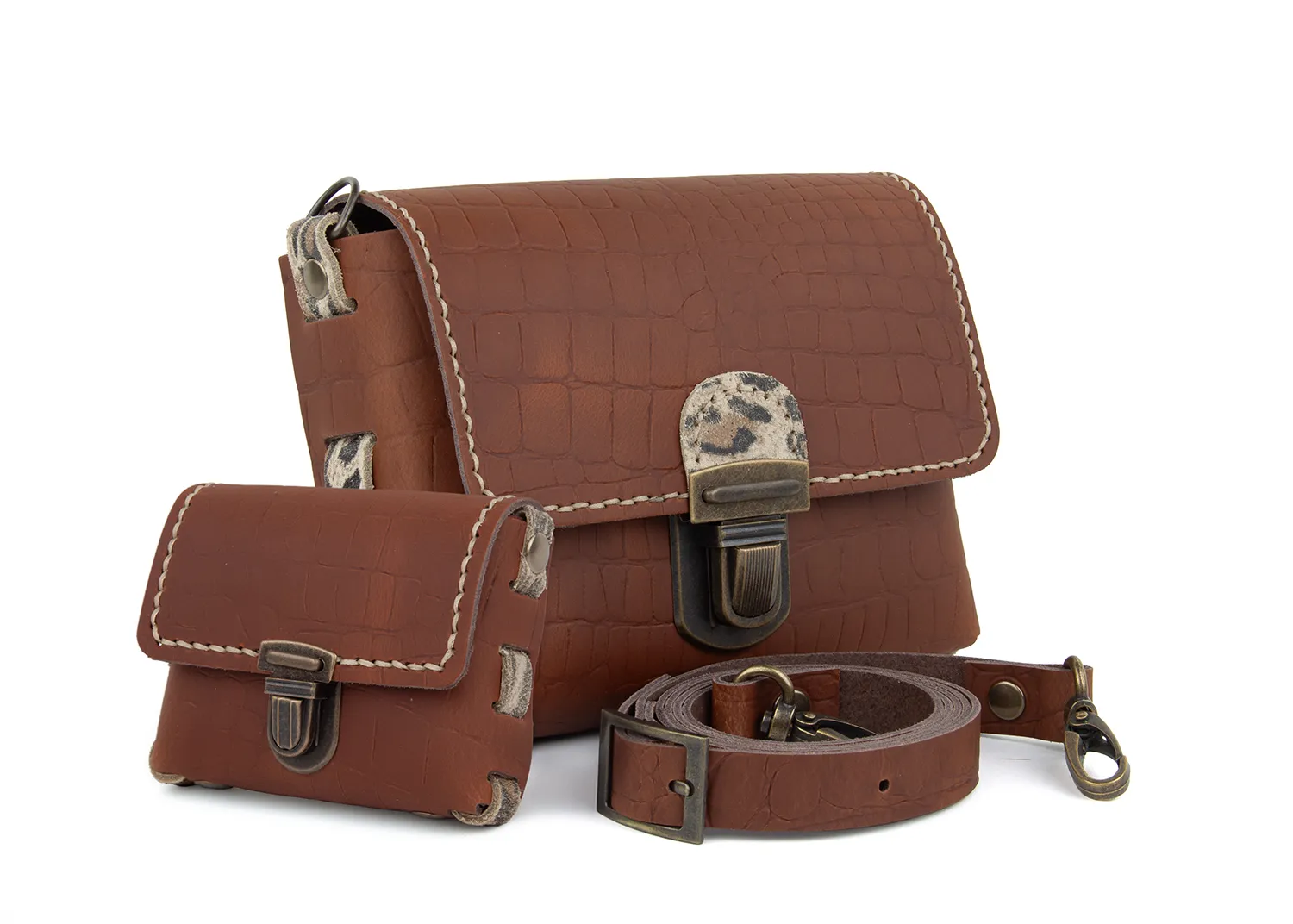 Stilvolle DIY-Crossbody Tasche JULYA aus hochwertigem Leder. Komplettes DIY-Set mit vorgestanzten Schnittmustern, allen Materialien und bebilderter „Schritt-für-Schritt“ Anleitung – ideal zum Selbermachen ohne Nähmaschine.