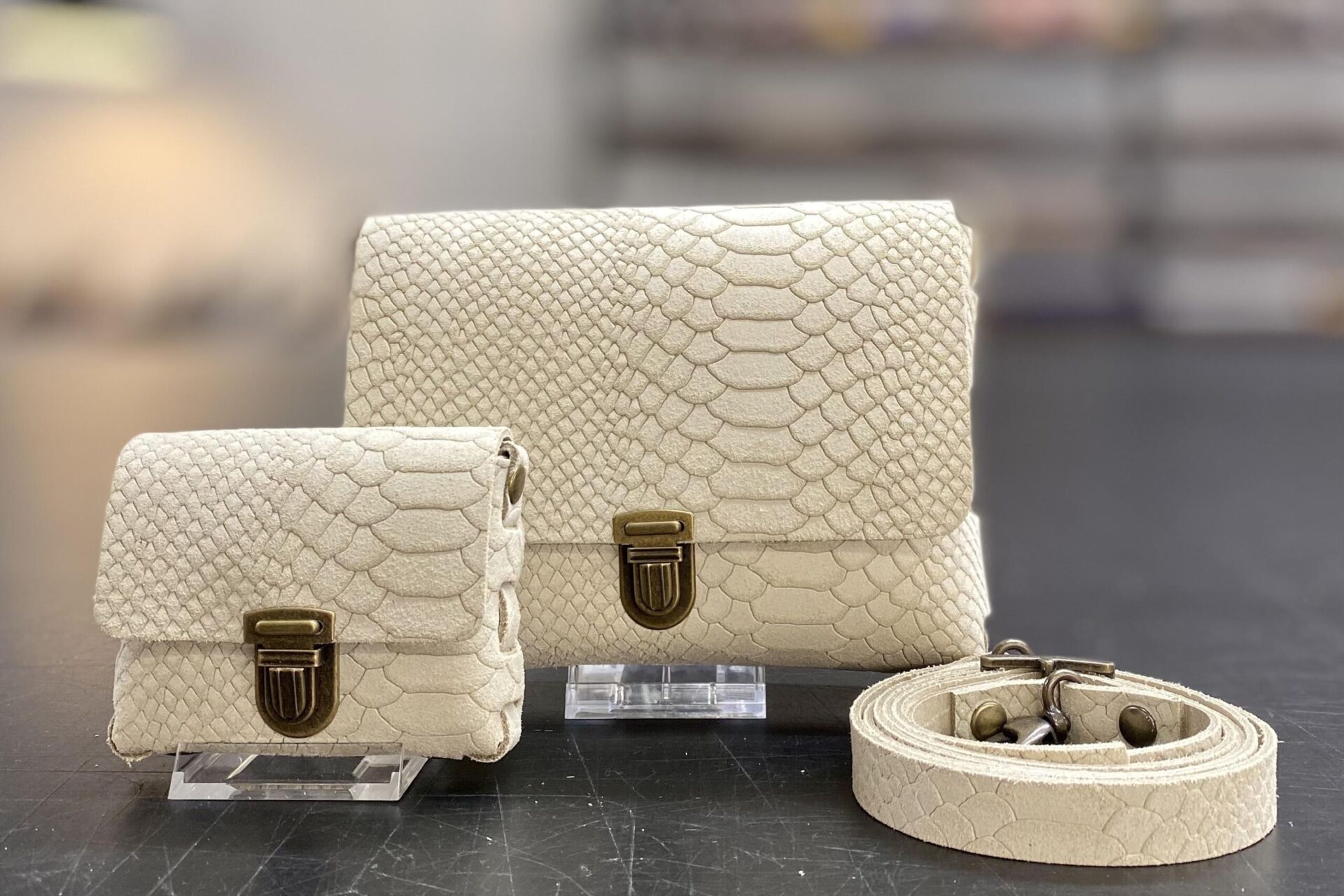 - Gestanste leren patronen (1 x tas, 1 x portemonneetje)