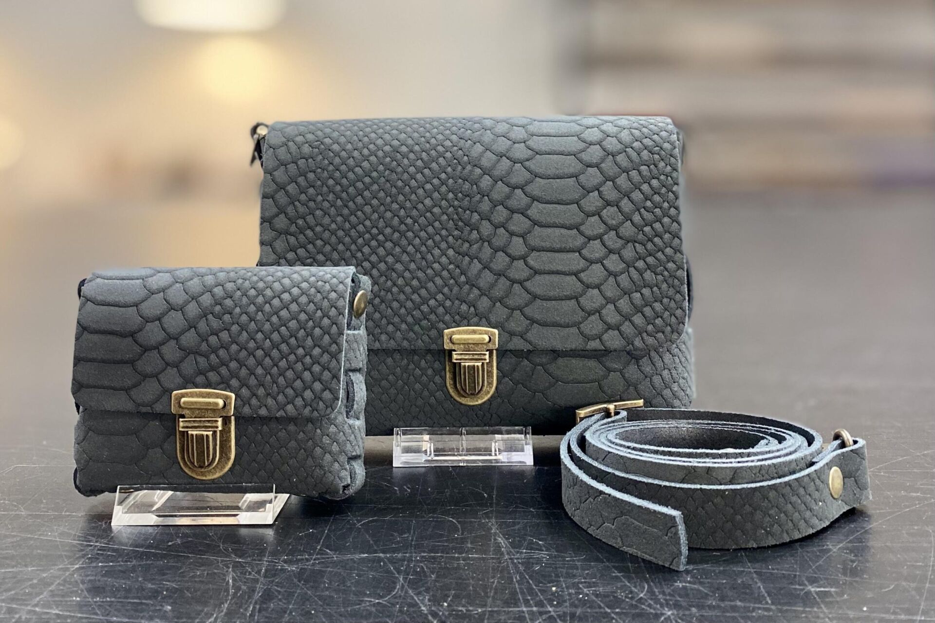 • Gestanste leren patronen (1 x tas, 1 x portemonneetje)