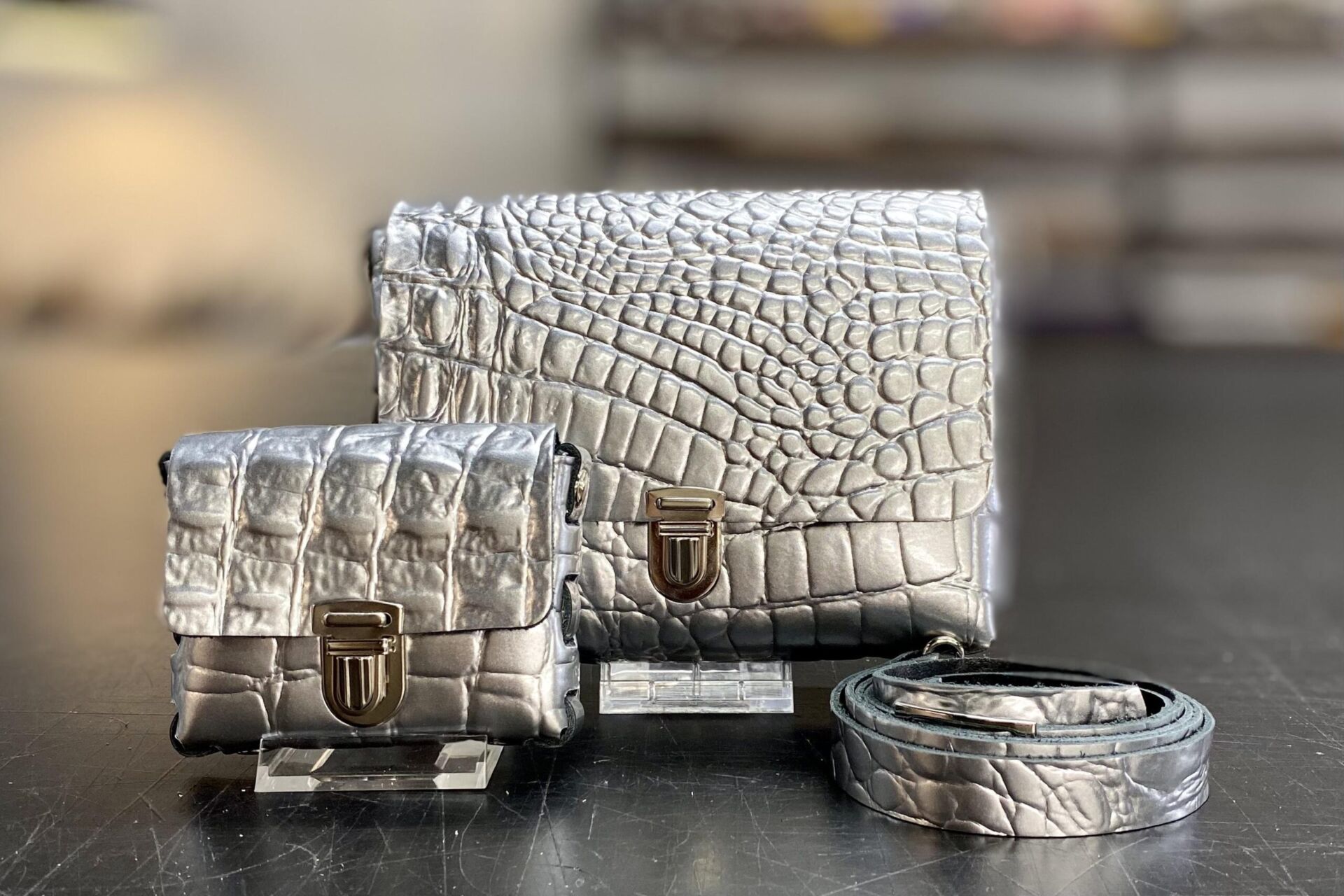 • Gestanste leren patronen (1 x tas, 1 x portemonneetje)