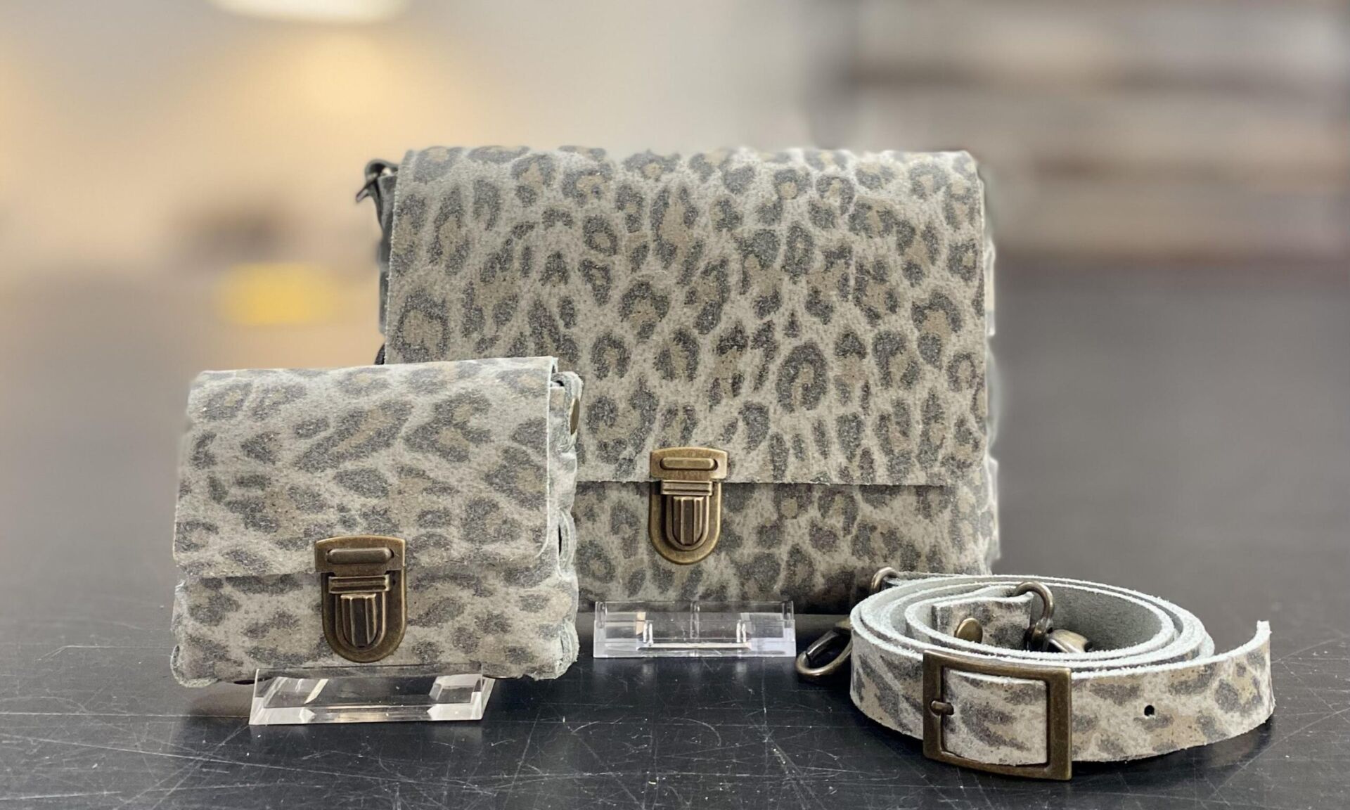 - Gestanste leren patronen (1 x tas, 1 x portemonneetje)
